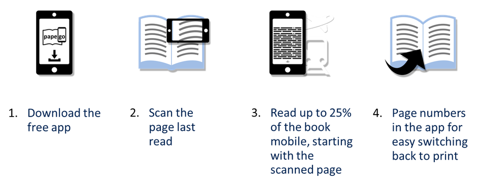 With Papego, you may scan a book as often as you want, but the excerpt downloaded previously will be overwritten each time. This means that it is possible to read the whole book on your smartphone, but you have to come back to the original printed book at least four times, after you’ve finished reading the previous section. The excerpt is stored inside the app and cannot be distributed. Therefore misuse of the app is made difficult.